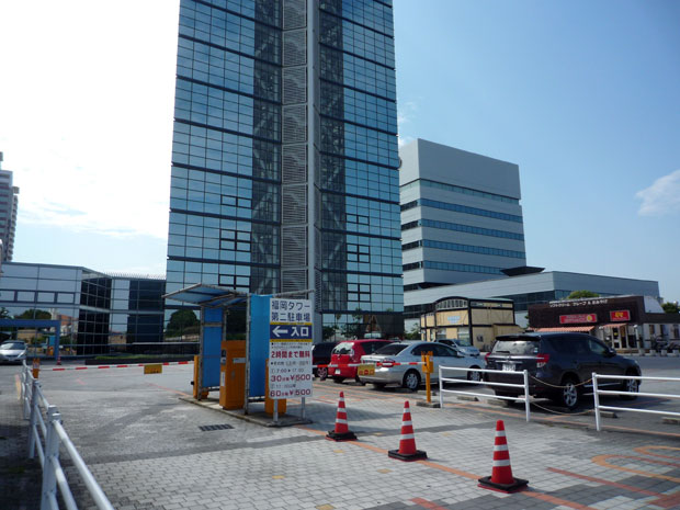 福岡タワー北側の道路より侵入して、福岡タワーの南側(正面入口)に回りこむ駐車場